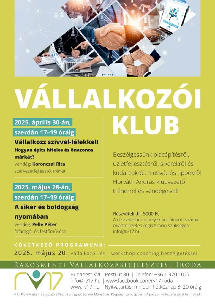 Tisztelt rákosmenti Vállalkozók! Kedves Klubtagok! A Rákosmenti Vállalkozásfejlesztési Iroda (RV17) meghívja Önt az április 30-án,…